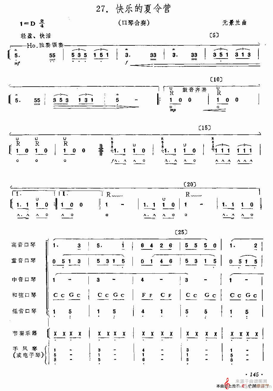 曲谱图网为您提供快乐的夏令营(口琴合奏曲谱)找谱子,就上曲谱图网。