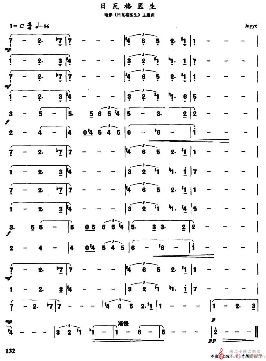 曲谱图网为您提供日瓦格医生(口琴简谱)找谱子,就上曲谱图网。