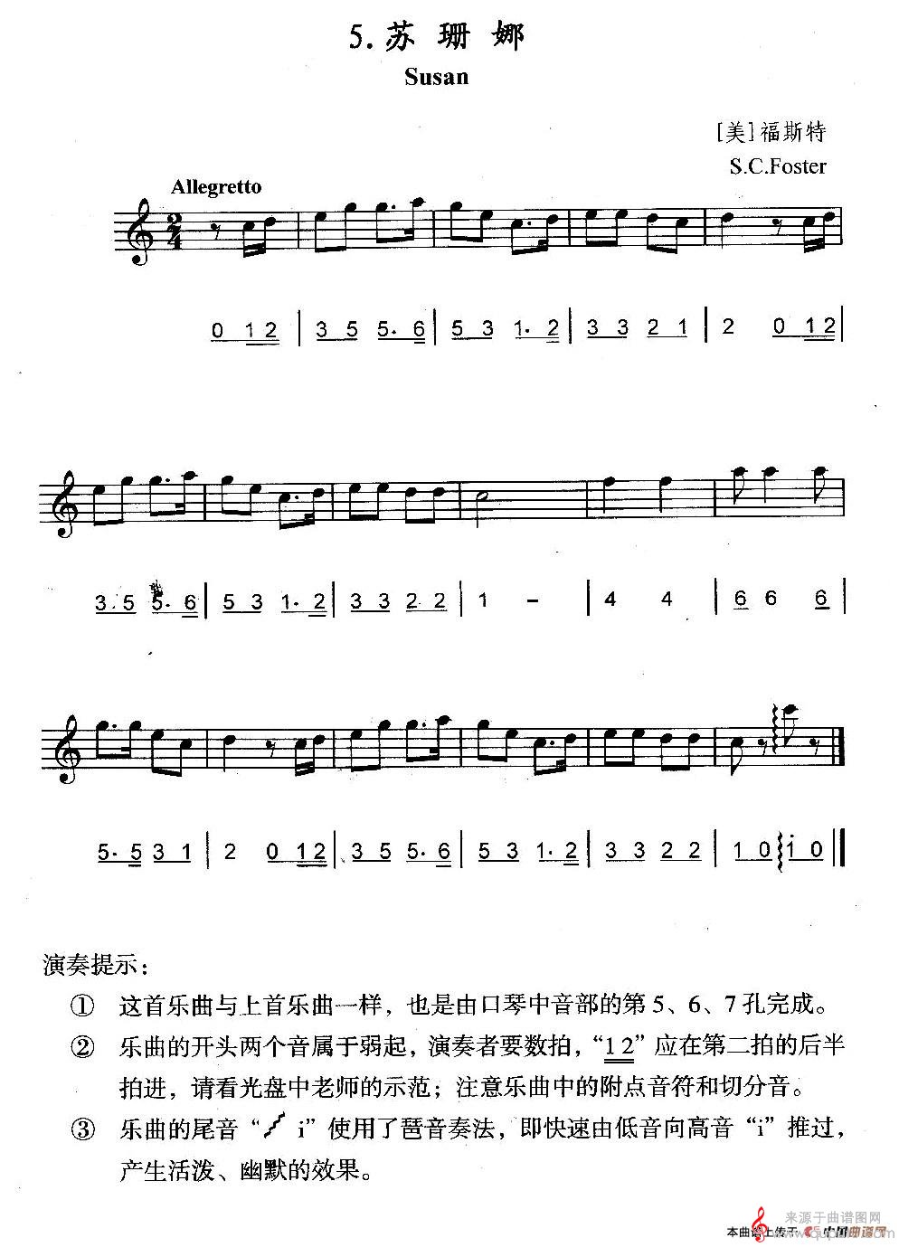 当前位置:曲谱图网器乐曲谱口琴苏珊娜(口琴曲伴奏演奏简谱+线简谱混排版)