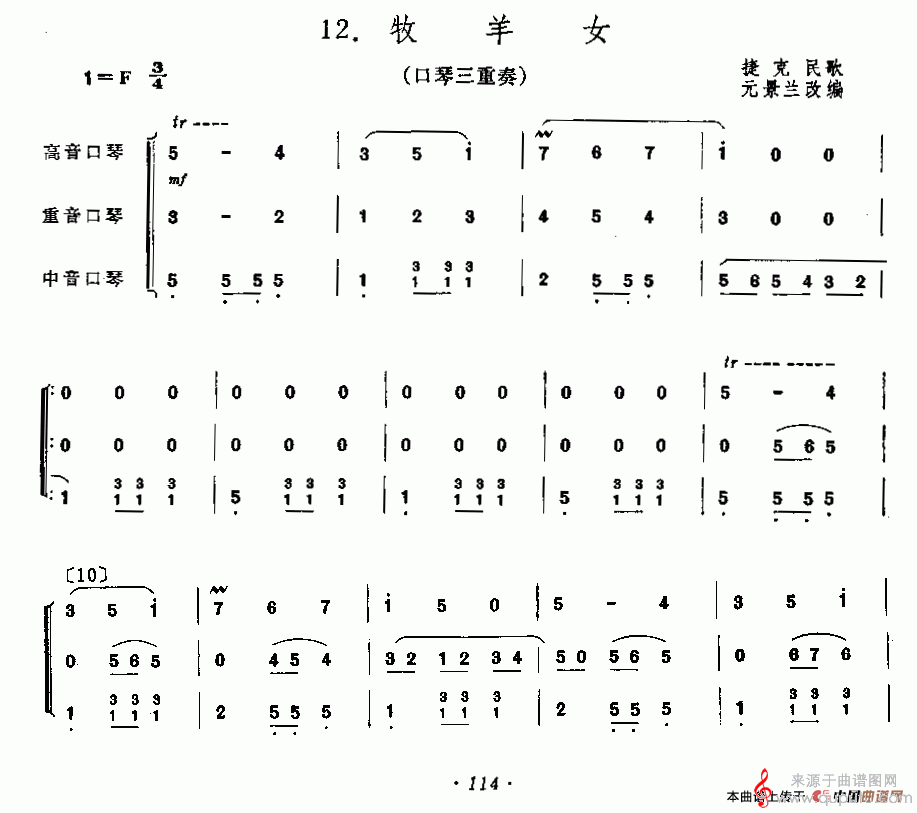 曲谱图网为您提供牧羊女(口琴三重奏演奏简谱)找谱子,就上曲谱图网。