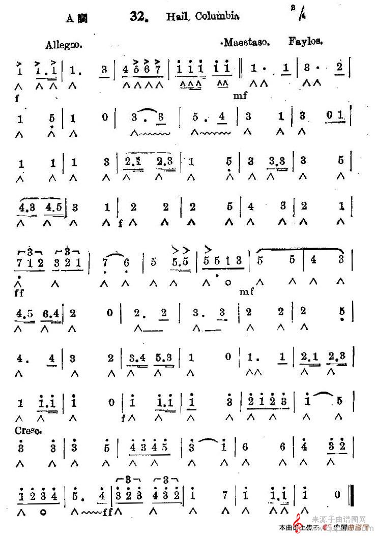 曲谱图网为您提供Hail, Columbia(口琴曲A调简谱)找谱子,就上曲谱图网。