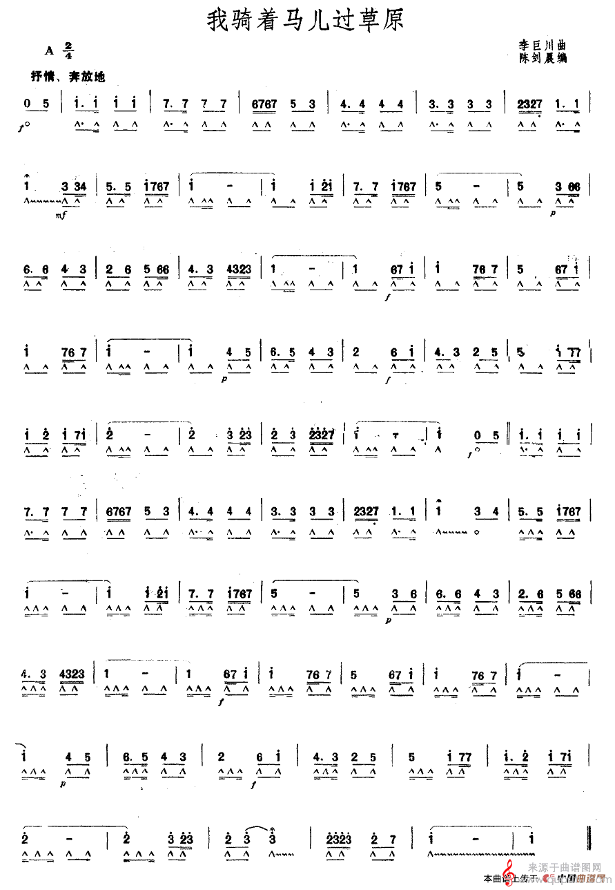 曲谱图网为您提供我骑着马儿过草原(口琴清吹独奏简谱)找谱子,就上曲谱图网。