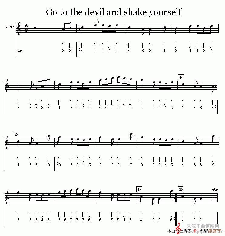 曲谱图网为您提供Go tu the deviland shake yourself(口琴曲谱蓝调风)找谱子,就上曲谱图网。