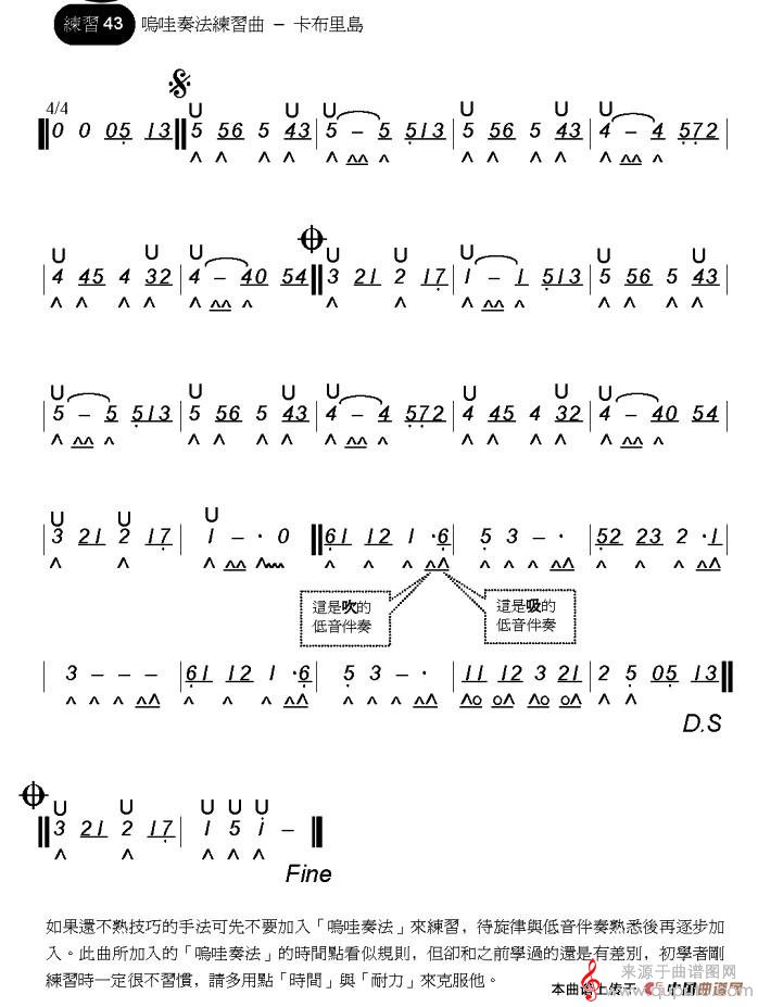 曲谱图网为您提供卡布里岛(口琴曲吹奏简谱)找谱子,就上曲谱图网。