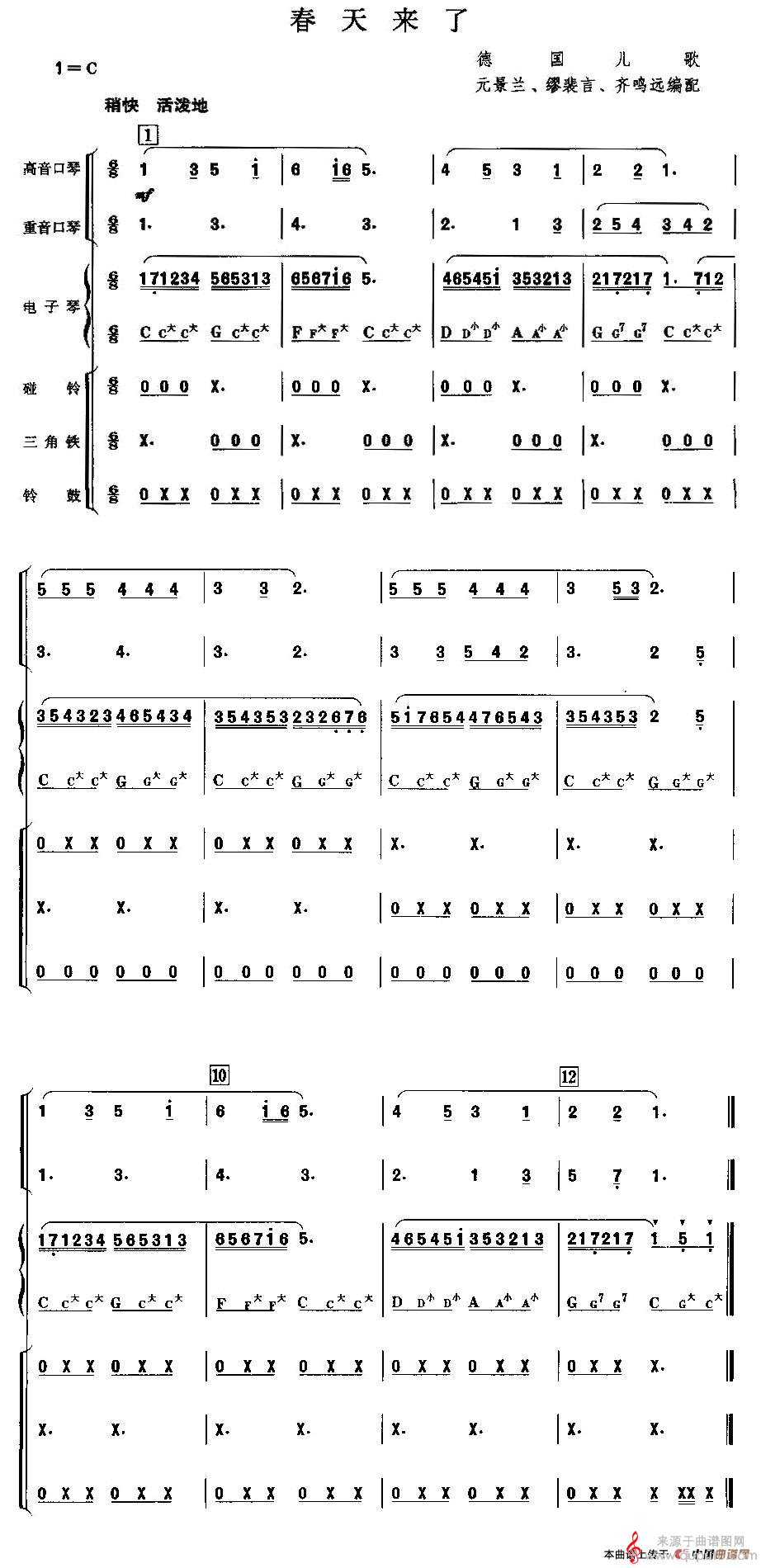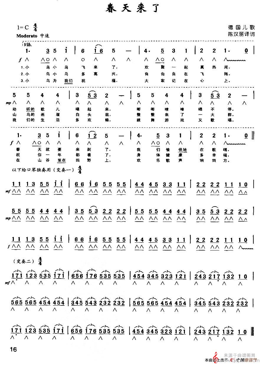 曲谱图网为您提供春天来了(口琴曲演奏简谱带歌词版)找谱子,就上曲谱图网。