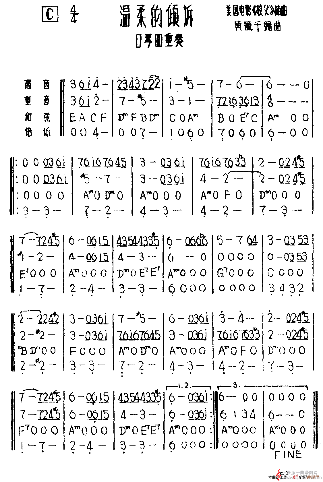 曲谱图网为您提供温柔的倾诉(口琴曲清吹演奏简谱)找谱子,就上曲谱图网。