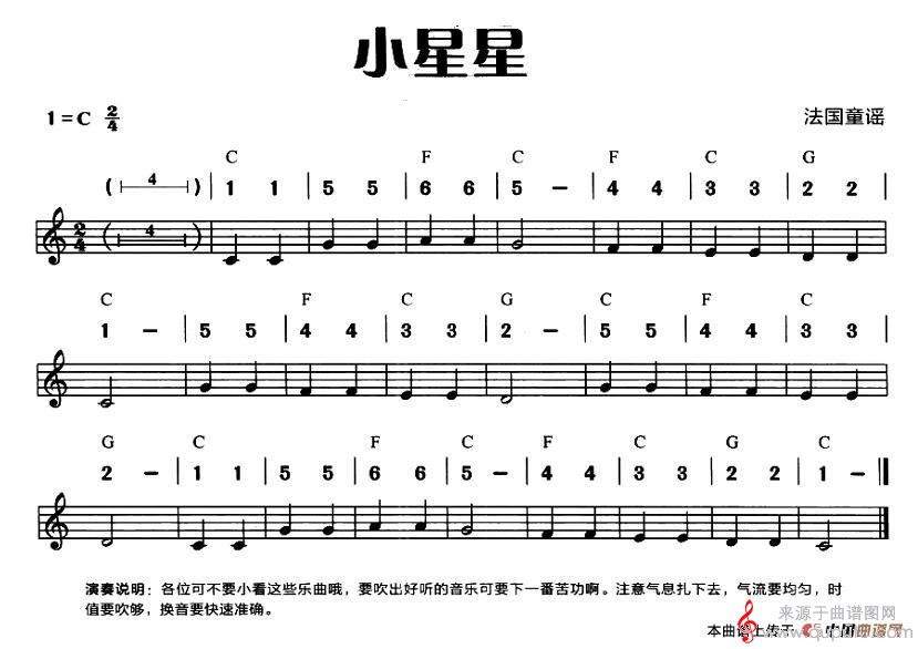 小星星(口琴口风琴简谱)