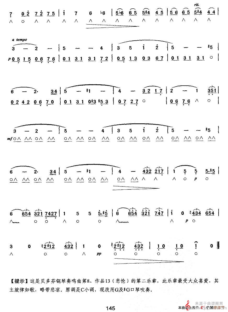 曲谱图网为您提供悲怆奏鸣曲第二乐章(口琴曲谱)找谱子,就上曲谱图网。