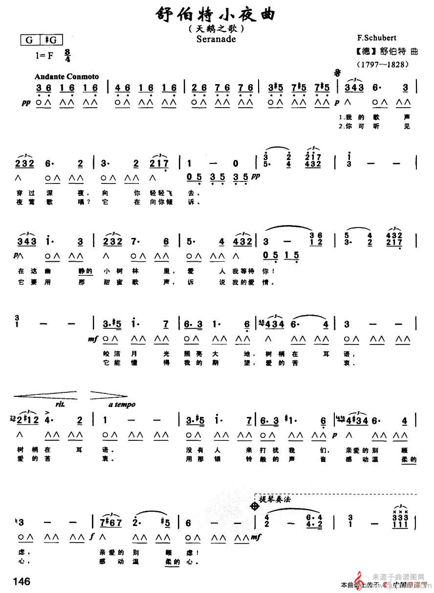 曲谱图网为您提供舒伯特小夜曲(口琴曲吹奏演奏简谱带歌词版)找谱子,就上曲谱图网。