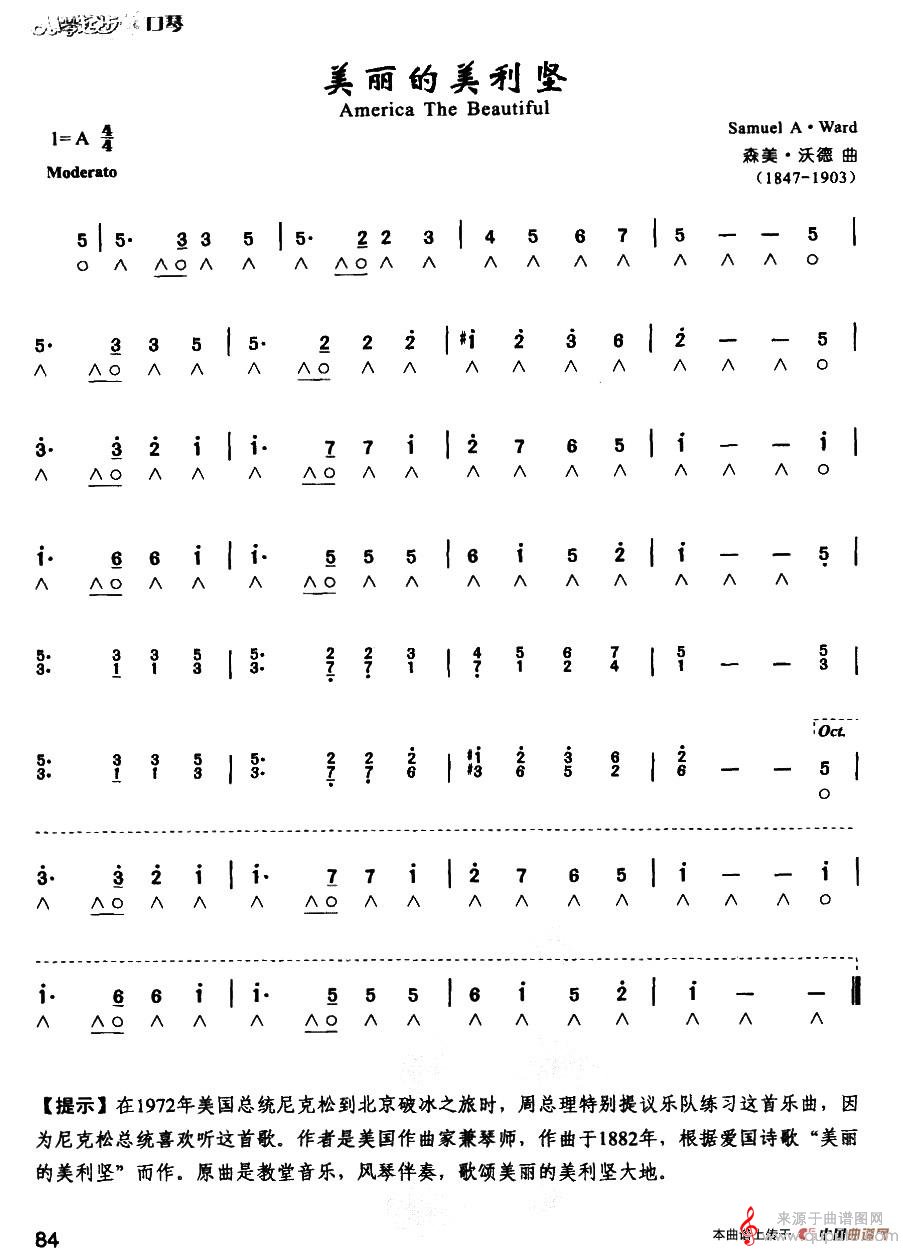 曲谱图网为您提供美丽的美利坚(口琴曲独奏简谱)找谱子,就上曲谱图网。