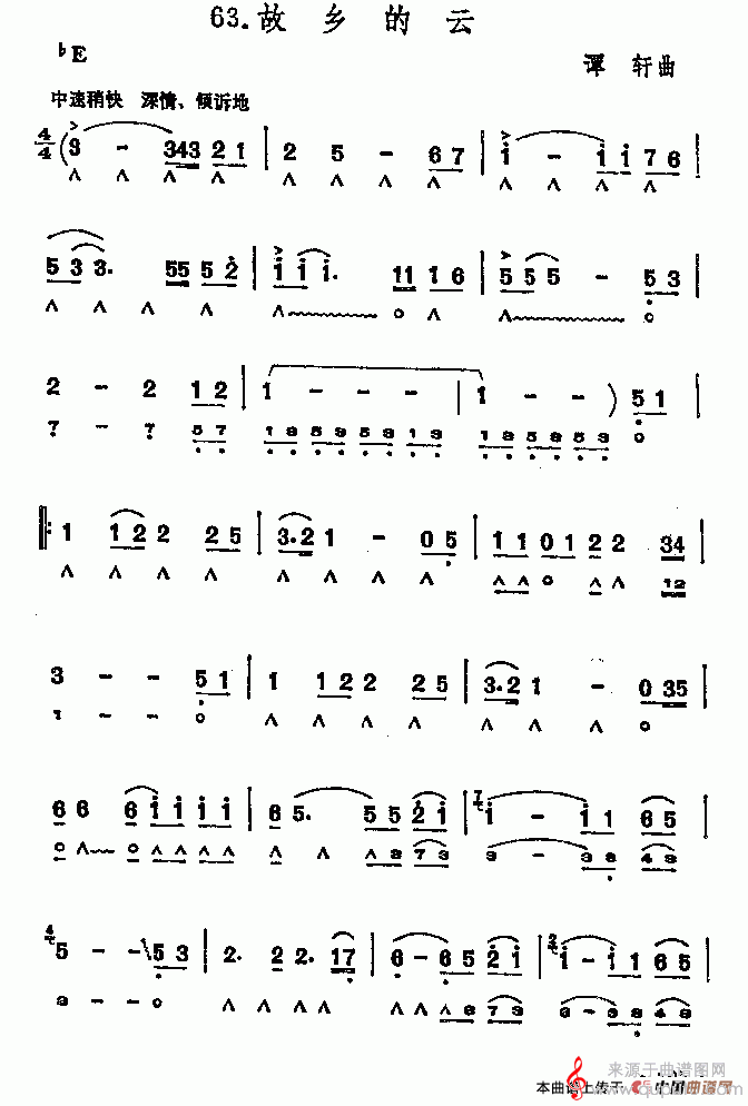 曲谱图网为您提供故乡的云(口琴曲演奏简谱)找谱子,就上曲谱图网。