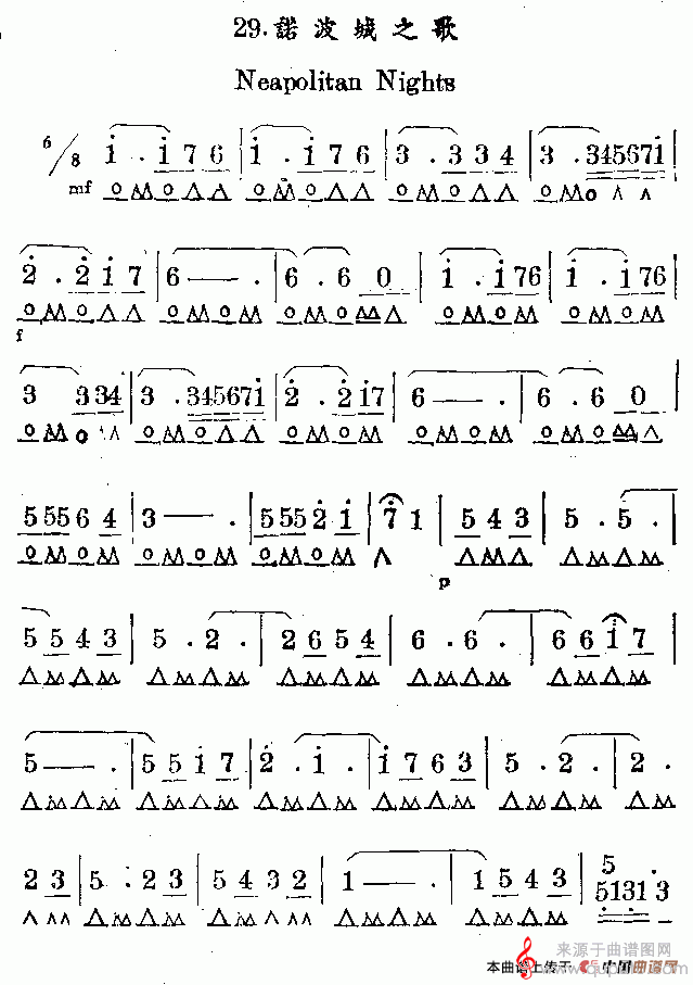 《诺波城之歌》(Neapolitan Nights),这是一个船夫所唱的小夜曲,每小节六拍,曲性婉转幽闲,吹奏时须特别注意。