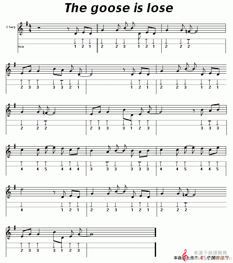 曲谱图网为您提供The goose is lose(口琴曲谱)找谱子,就上曲谱图网。