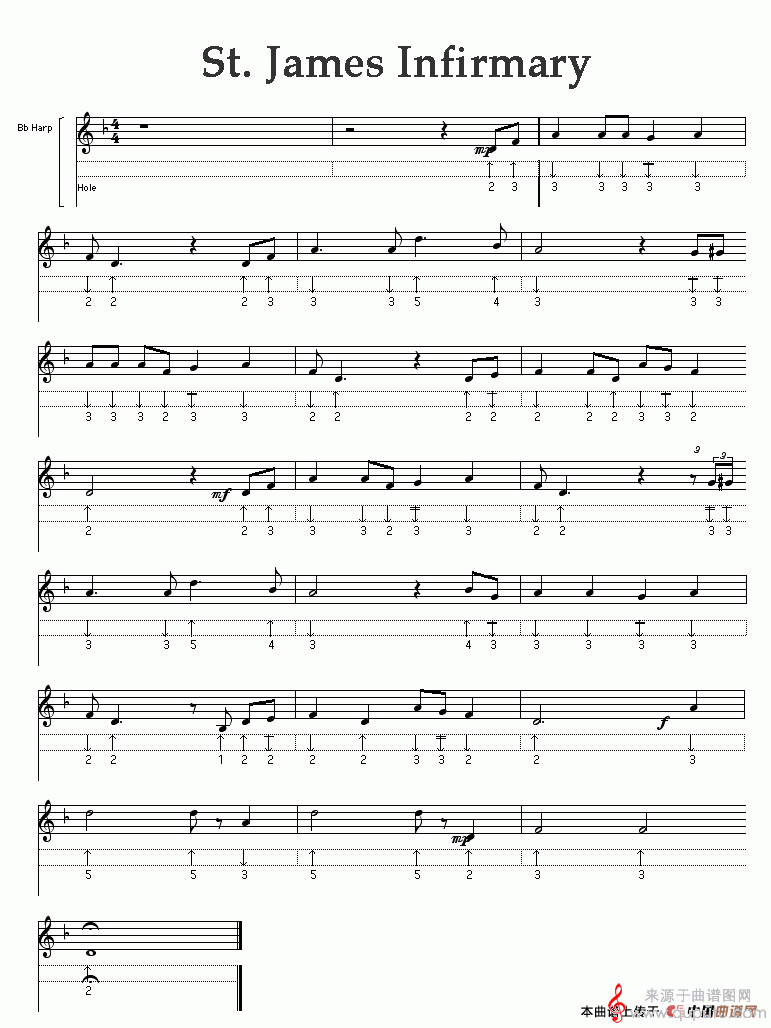 曲谱图网为您提供St.James Infirmary(口琴曲谱)找谱子,就上曲谱图网。