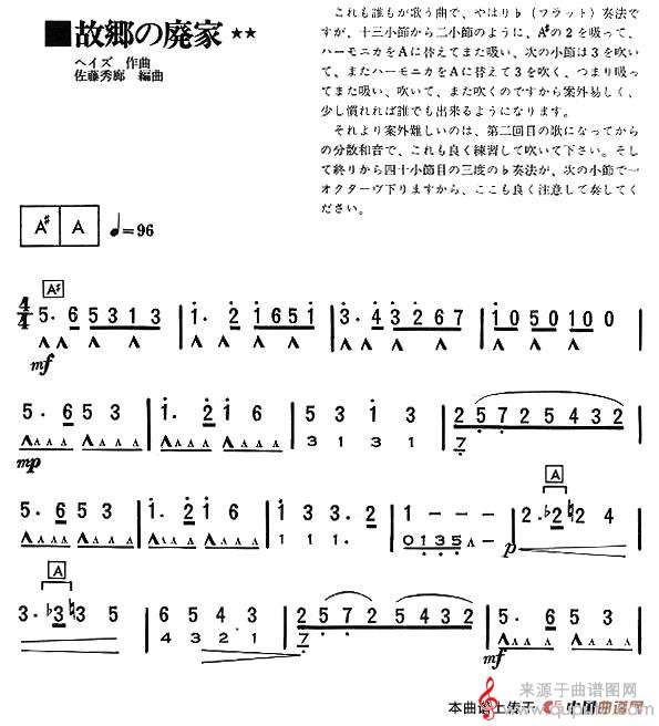 曲谱图网为您提供山腰上的家园(口琴曲谱)找谱子,就上曲谱图网。