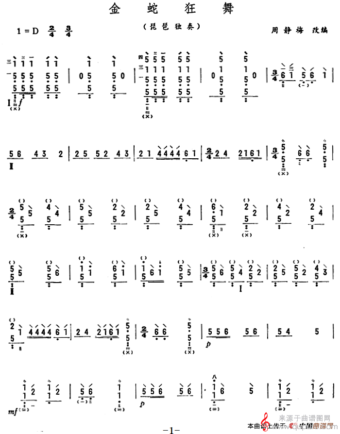 曲谱图网为您提供金蛇狂舞简谱(周静梅改编版)找谱子,就上曲谱图网。