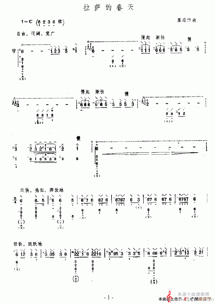 当前位置:曲谱图网器乐曲谱琵琶拉萨的春天(拉萨的春天歌曲)