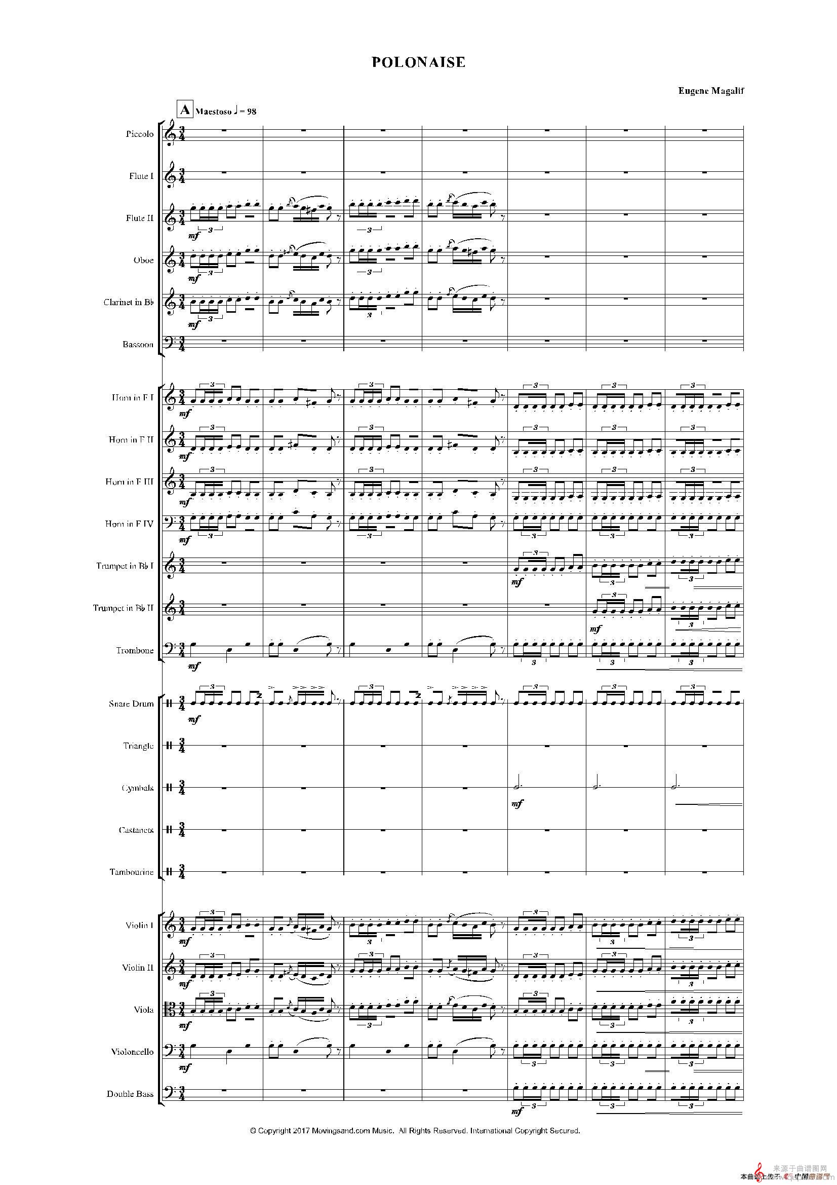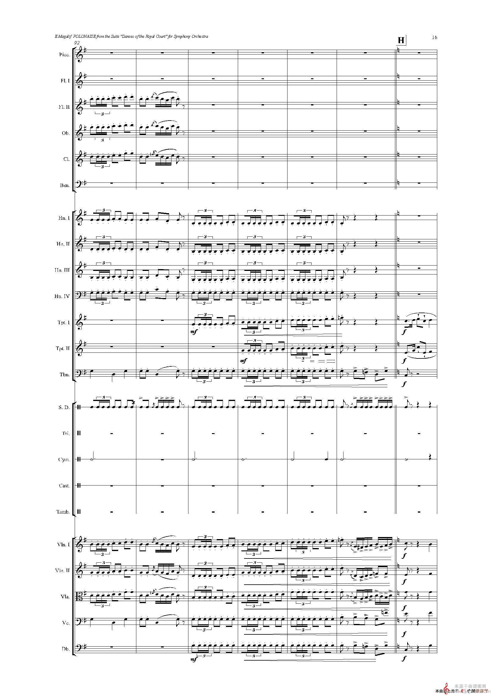 曲谱图网为您提供《来自皇室的舞蹈》管弦乐套曲:1.POLONAISE(波兰舞曲)(总谱)找谱子,就上曲谱图网。