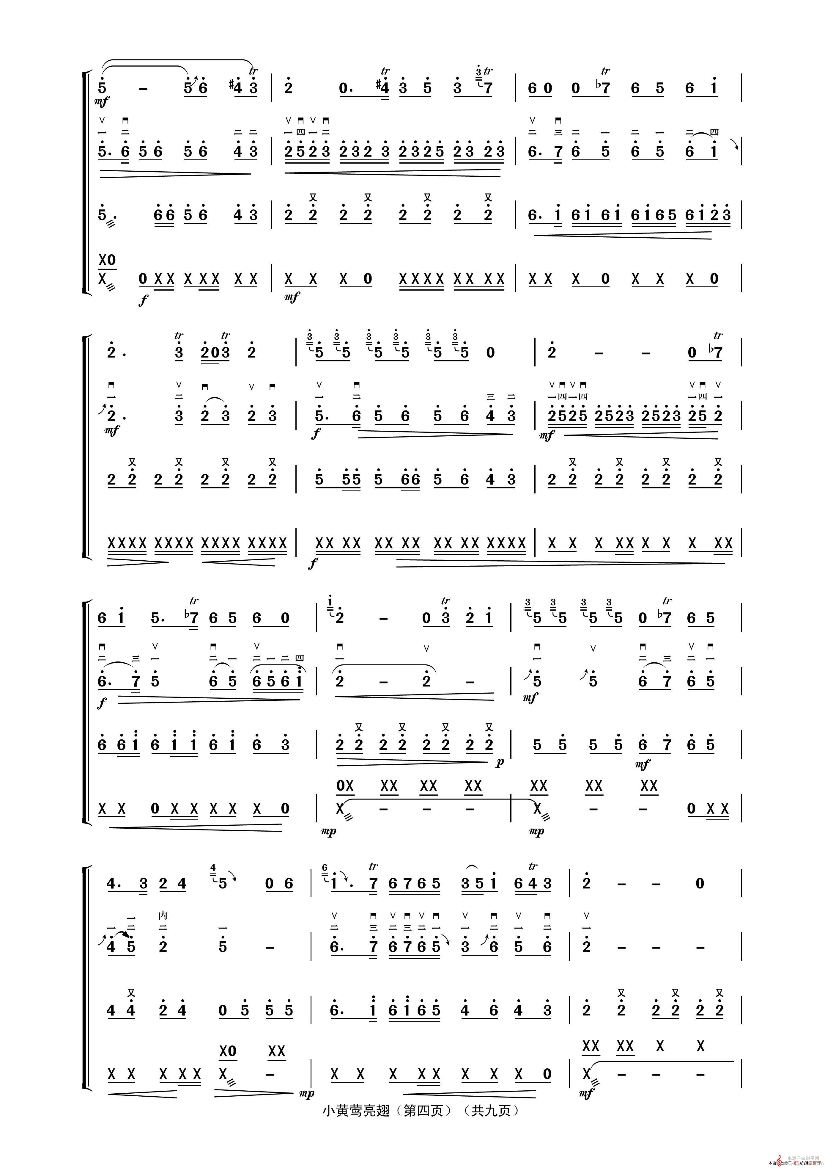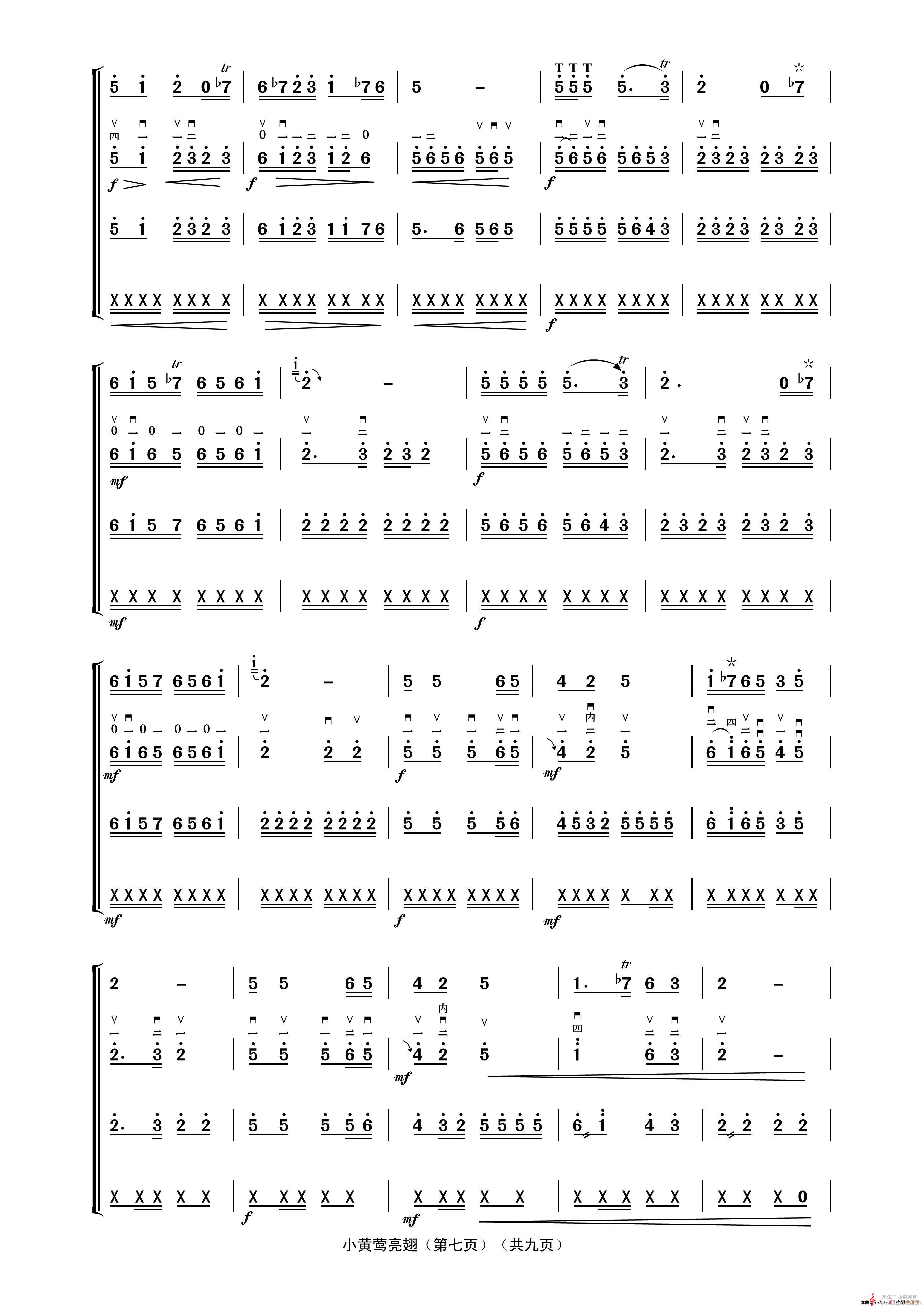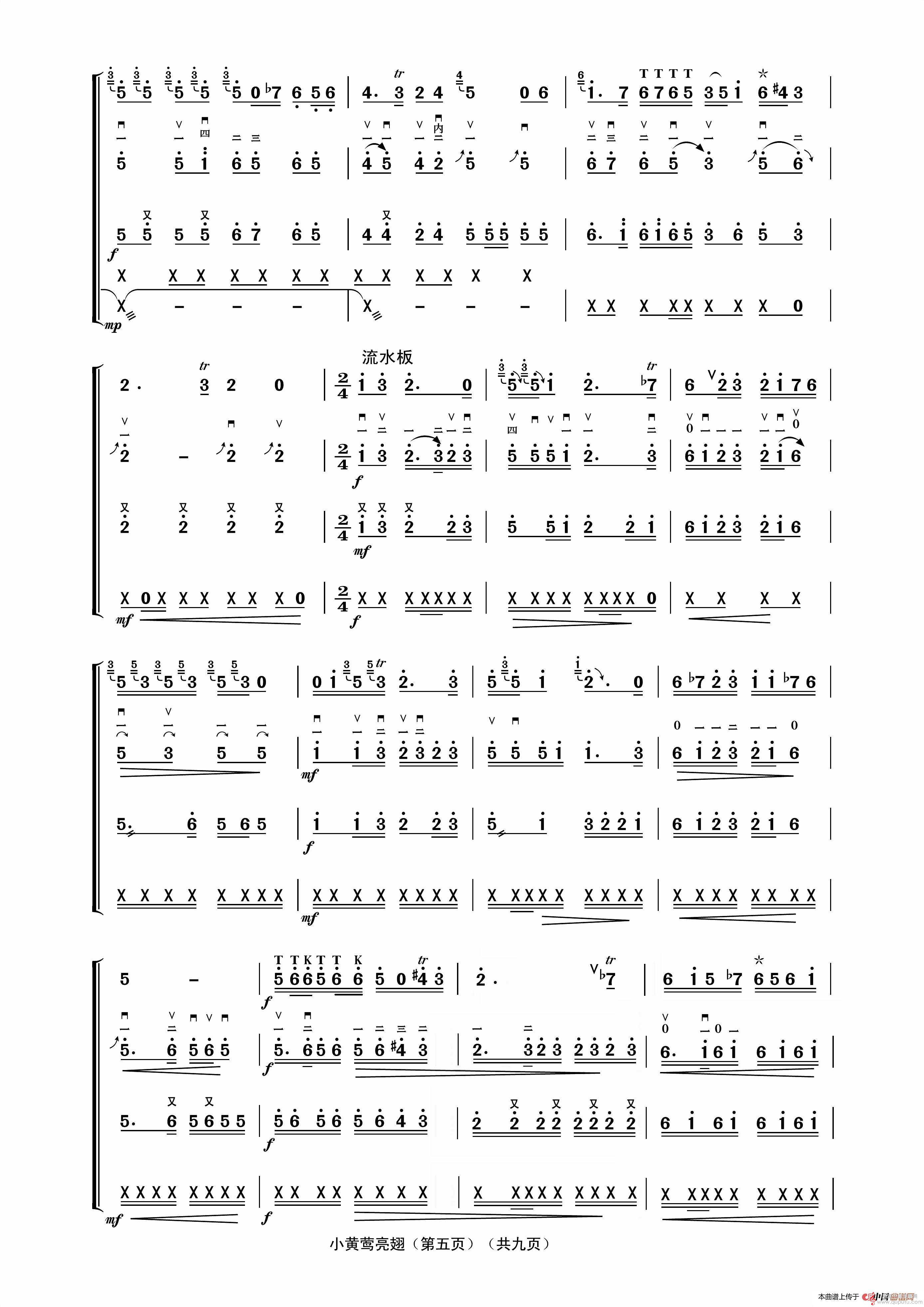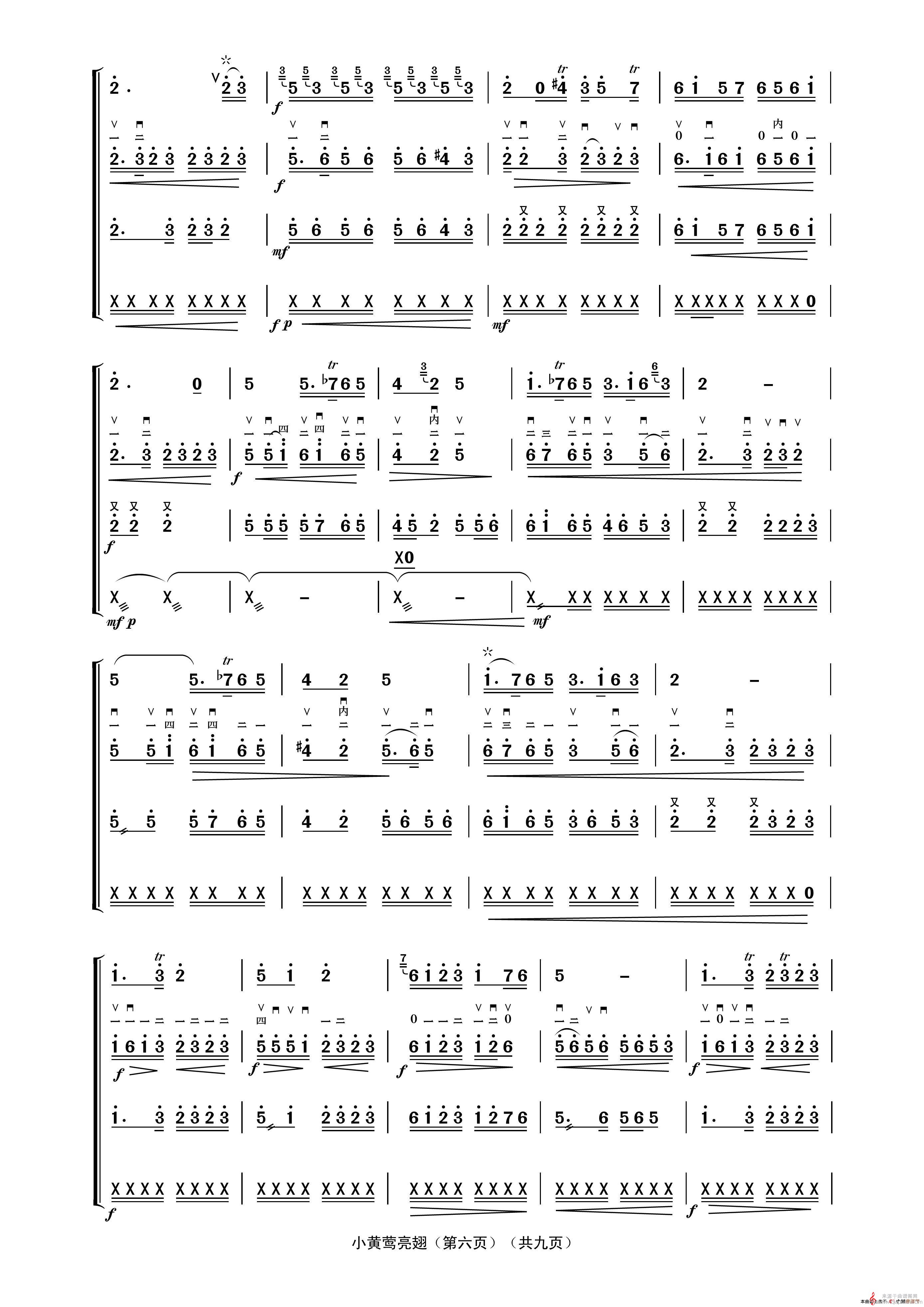 曲谱图网为您提供小黄莺亮翅(二人台牌子曲、民乐合奏)找谱子,就上曲谱图网。