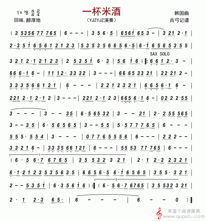 曲谱图网为您提供一杯米酒(萨克斯教学简谱)找谱子,就上曲谱图网。