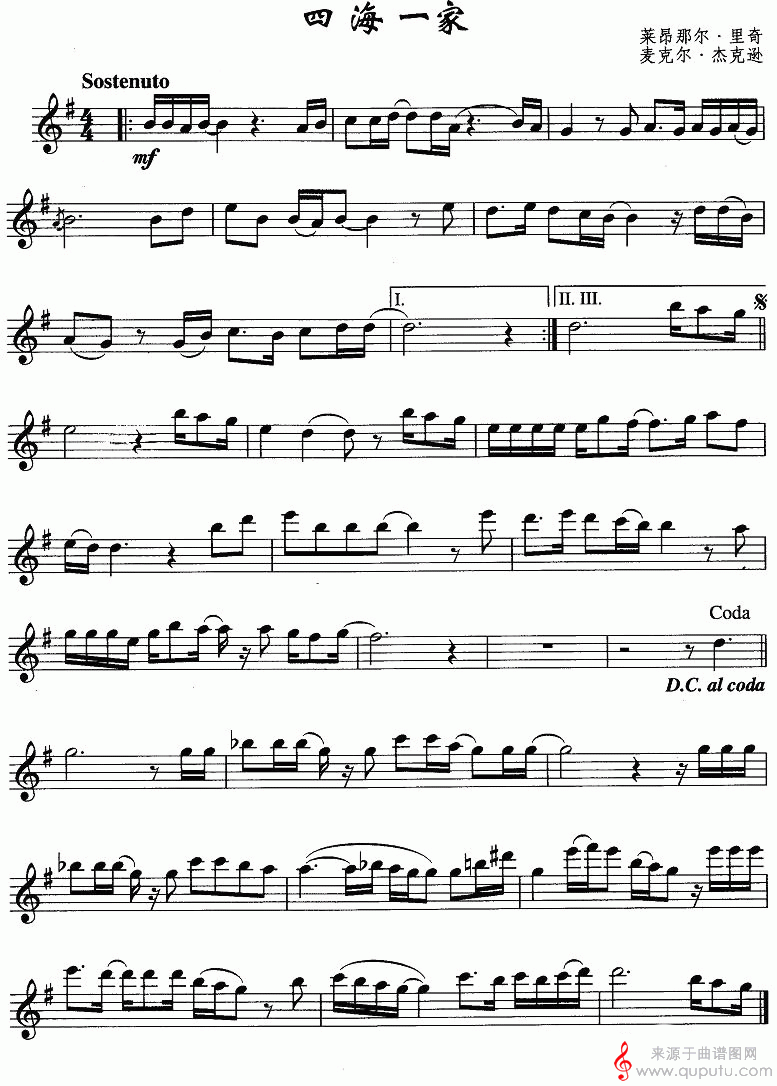 曲谱图网为您提供四海一家(萨克斯演奏五线谱)找谱子,就上曲谱图网。