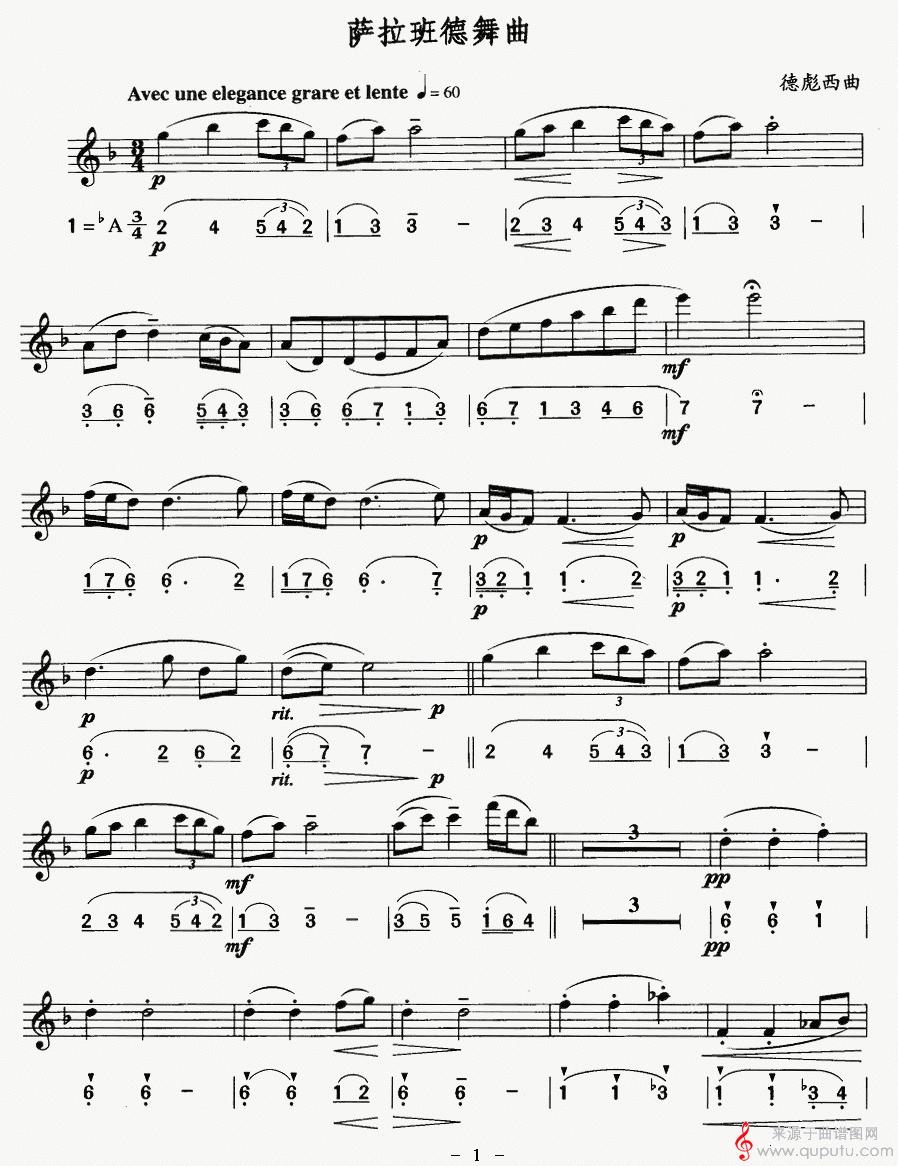 萨拉班德舞曲(萨克斯演奏谱线简谱混排版)
