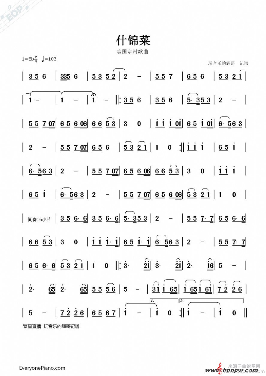 什锦菜(什锦菜萨克斯独奏演奏简谱曲谱)