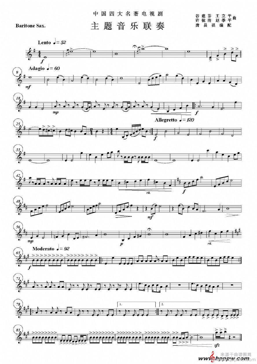 曲谱图网为您提供中国四大名著电视剧音乐主题音乐联奏(四重奏上低音萨克斯分谱)萨克斯演奏五线谱找谱子,就上曲谱图网。