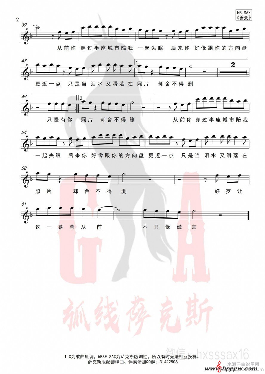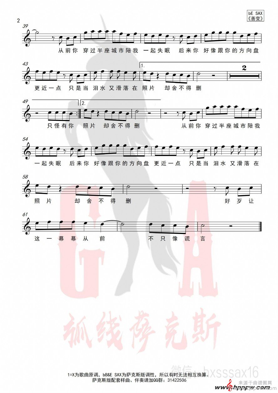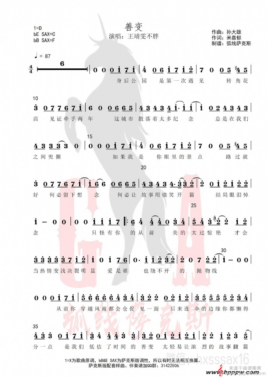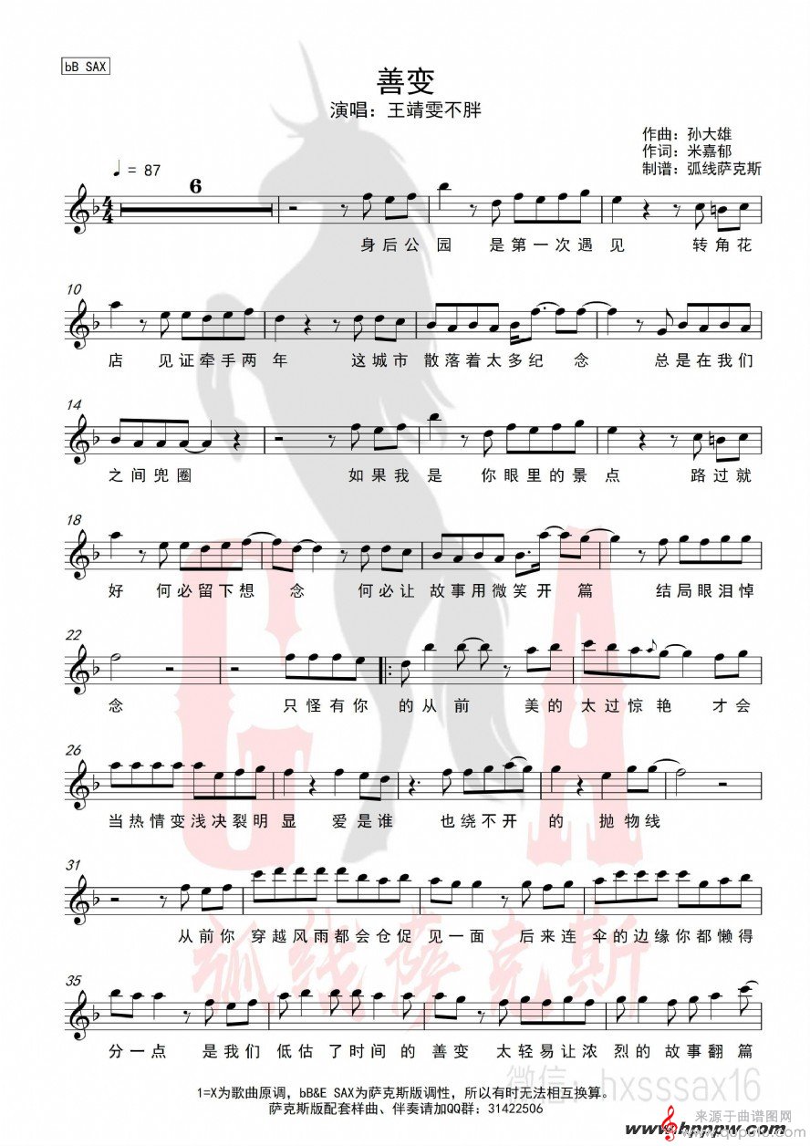 曲谱图网为您提供善变(善变萨克斯歌词歌曲曲谱)找谱子,就上曲谱图网。
