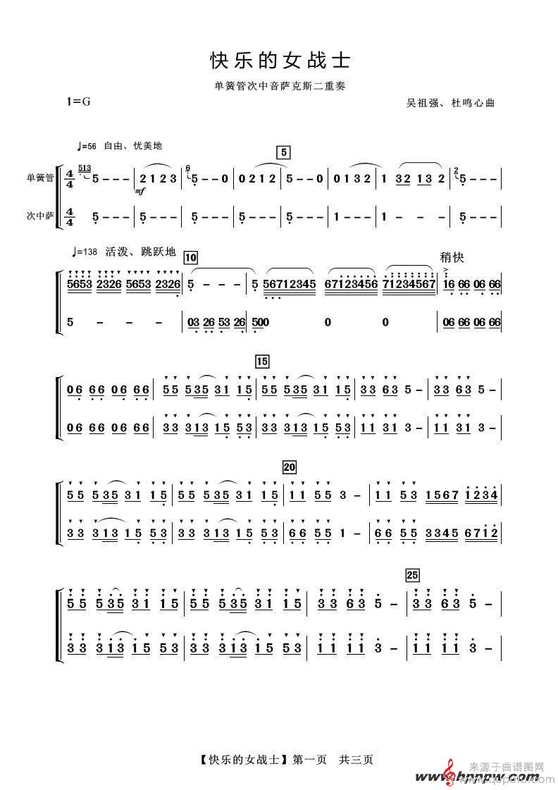 快乐的女战士(快乐的女战士小号单簧管次中音萨克斯二重奏简谱)