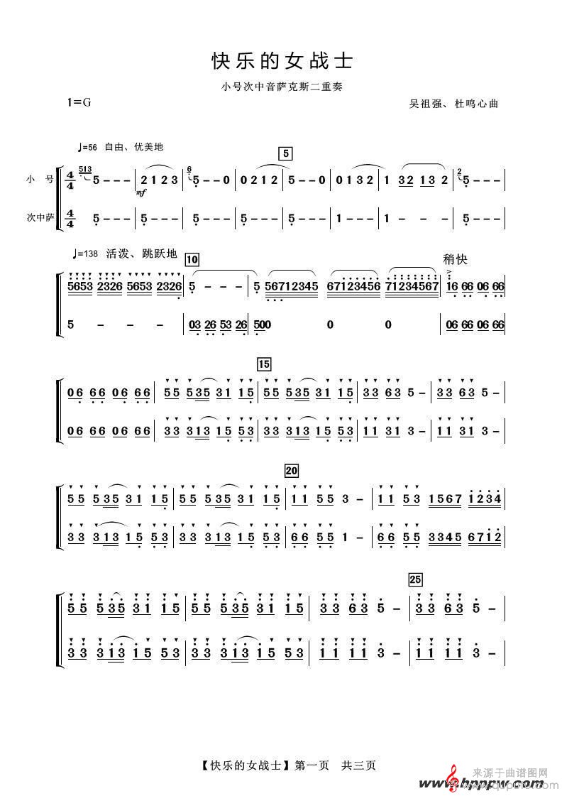 曲谱图网为您提供快乐的女战士(快乐的女战士小号单簧管次中音萨克斯二重奏简谱)找谱子,就上曲谱图网。