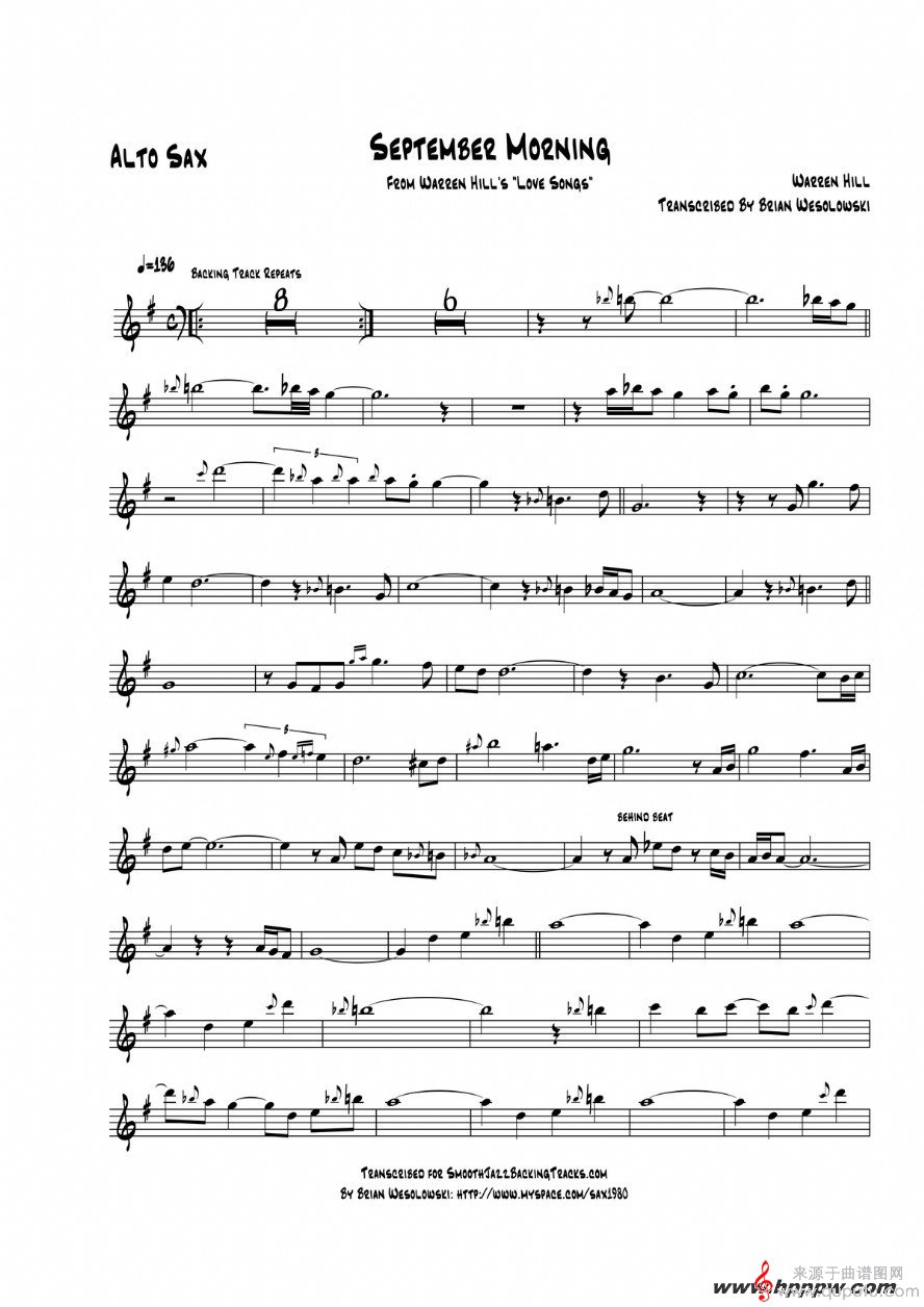 曲谱图网为您提供september morning萨克斯五线曲谱找谱子,就上曲谱图网。