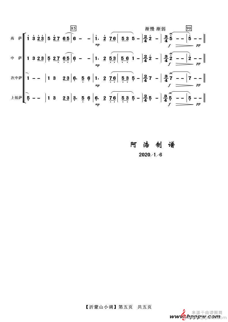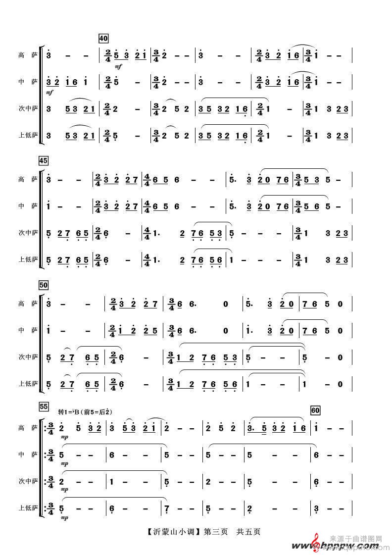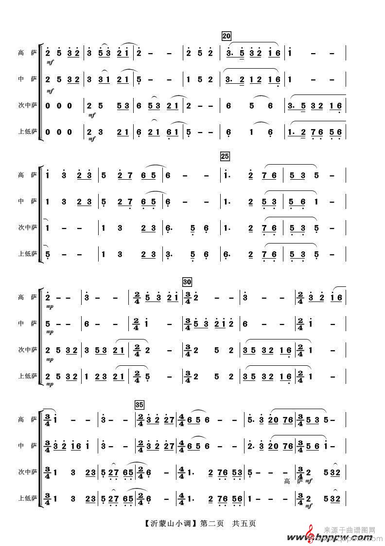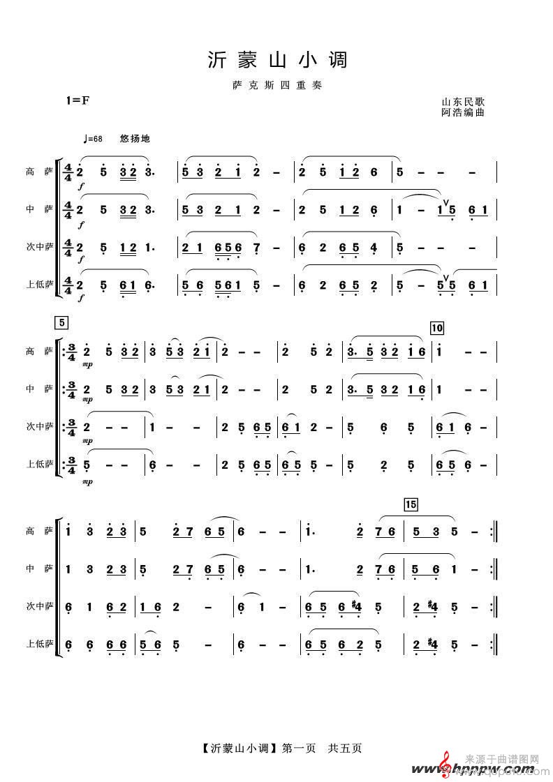 曲谱图网为您提供沂蒙山小调(山东民歌沂蒙山小调萨克斯四重奏简谱)找谱子,就上曲谱图网。