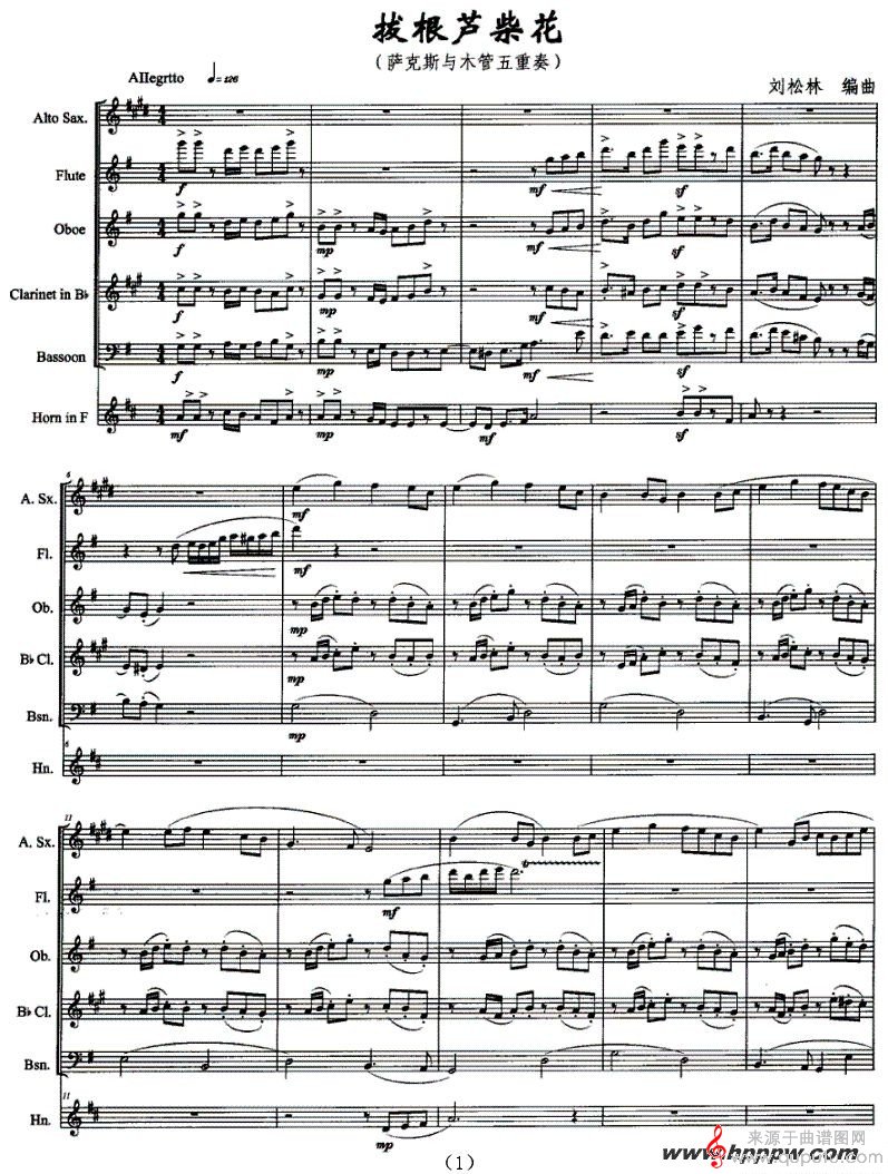 曲谱图网为您提供拔根芦柴花(拔根芦柴花萨克斯和木管五重奏演奏五线简谱)找谱子,就上曲谱图网。