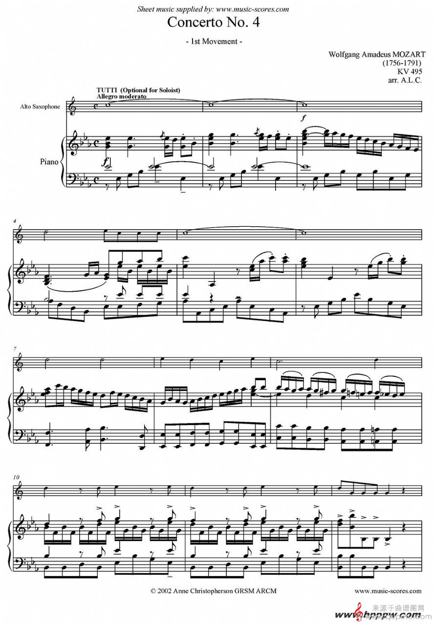 曲谱图网为您提供《mozart:concerto kv495 no.4-1st》萨克斯演奏五线谱找谱子,就上曲谱图网。