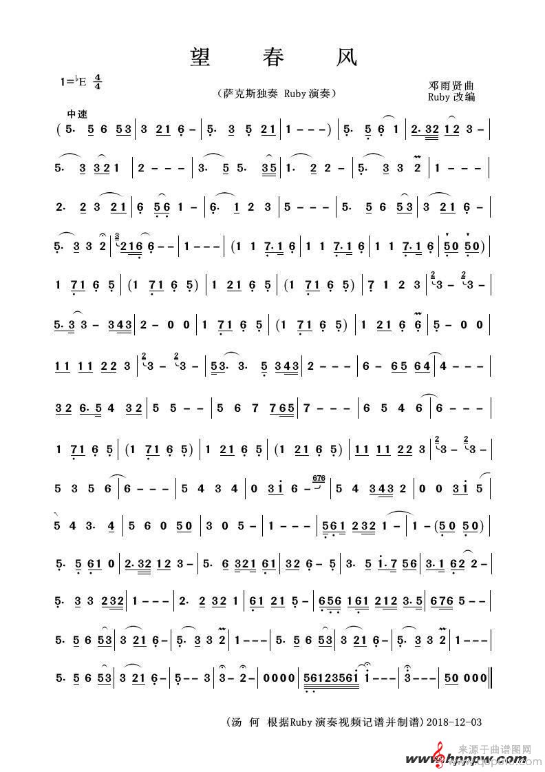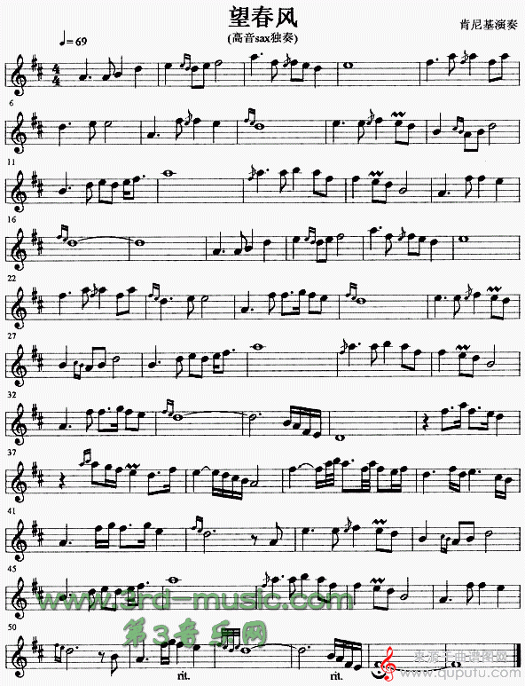望春风(望春风高音萨克斯独奏五线谱简谱)