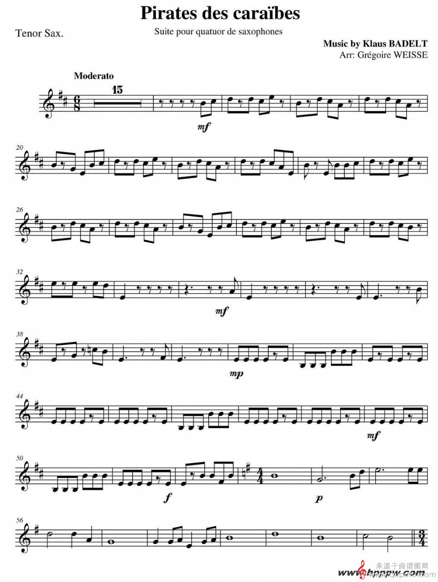 曲谱图网为您提供加勒比海盗(加勒比海盗萨克斯独奏五线曲谱)找谱子,就上曲谱图网。