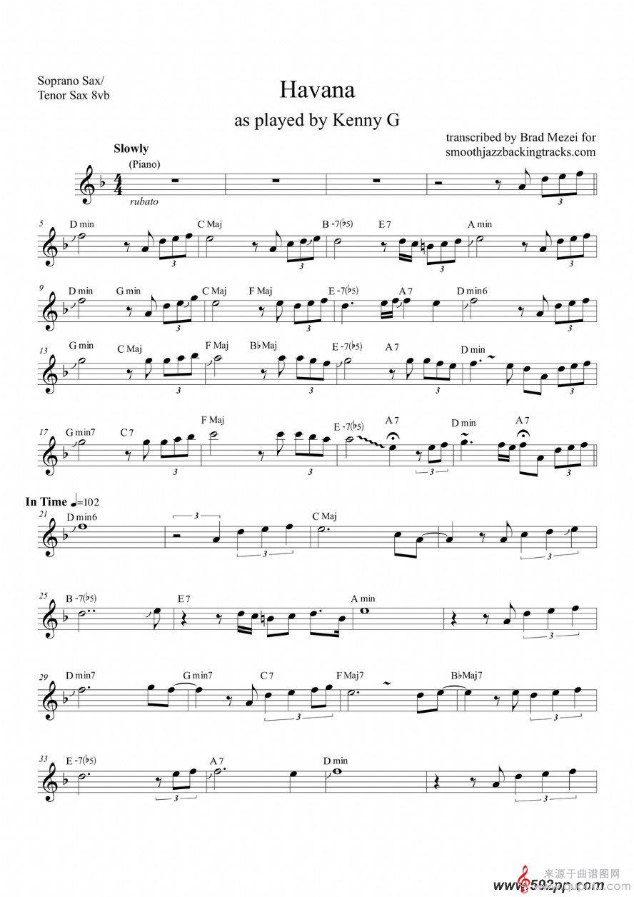 havana(havana萨克斯独奏五线简谱)
