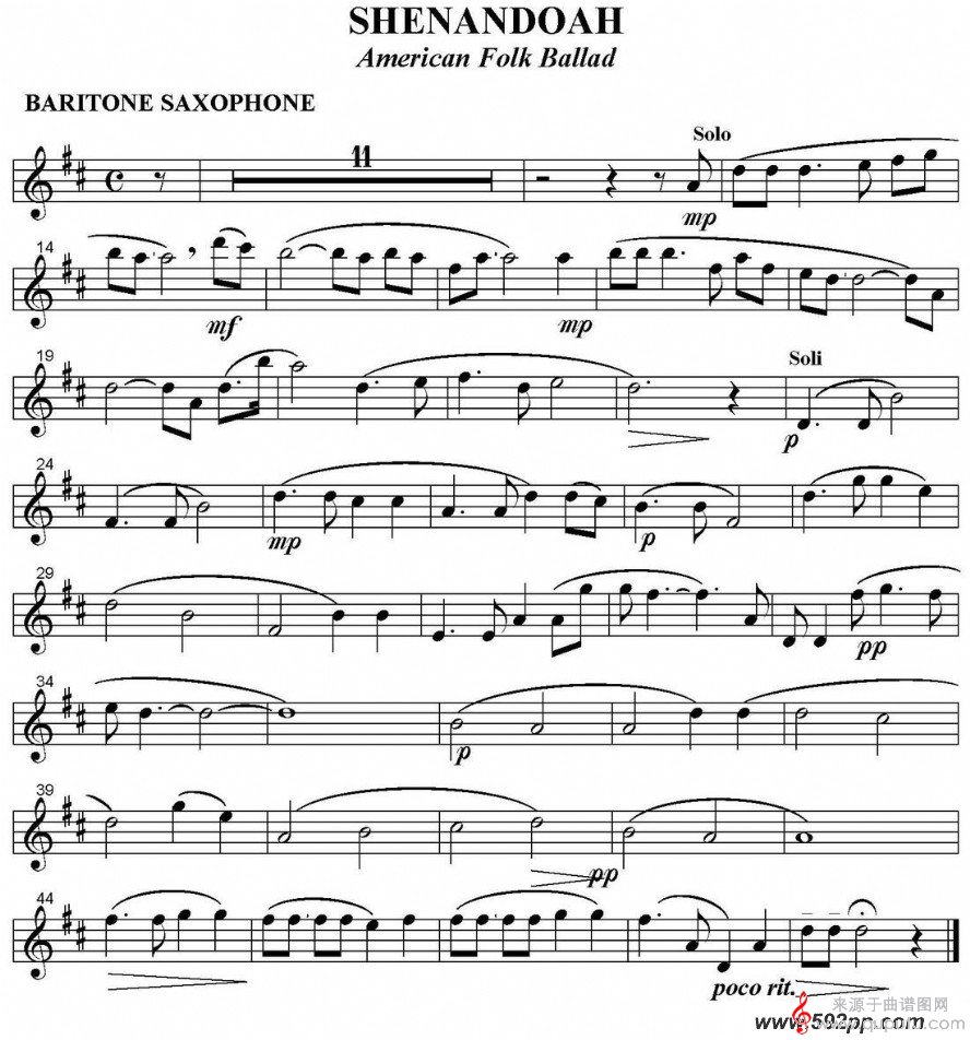 曲谱图网为您提供shenandoah萨克斯简谱找谱子,就上曲谱图网。