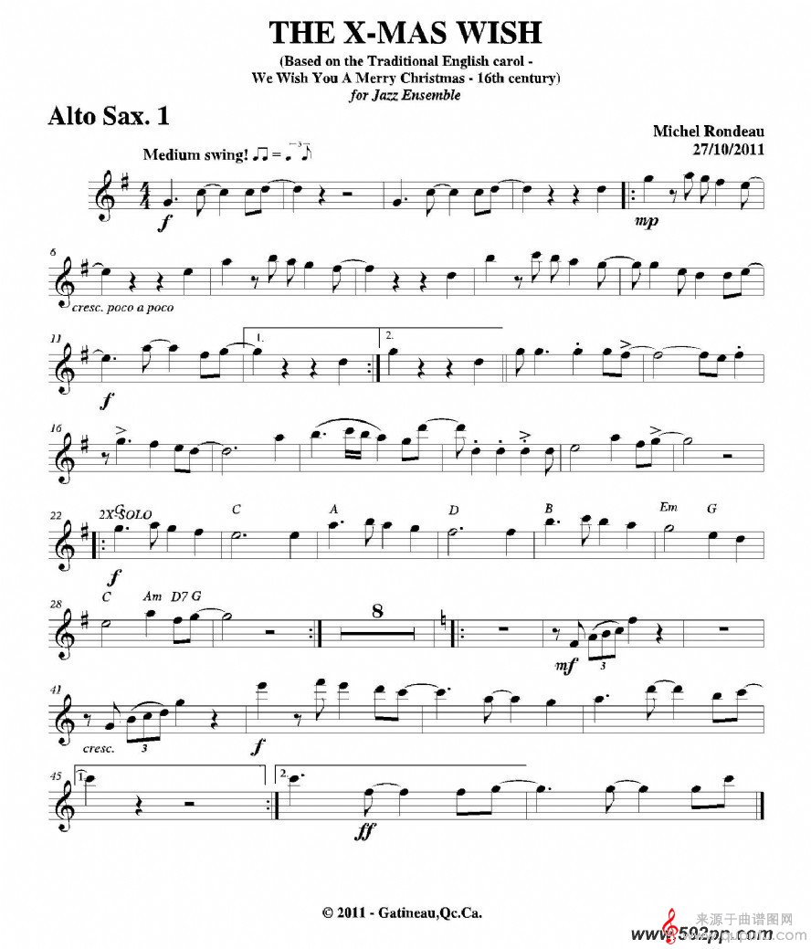 曲谱图网为您提供the x-mas wish(萨克斯谱爵士管乐团)找谱子,就上曲谱图网。
