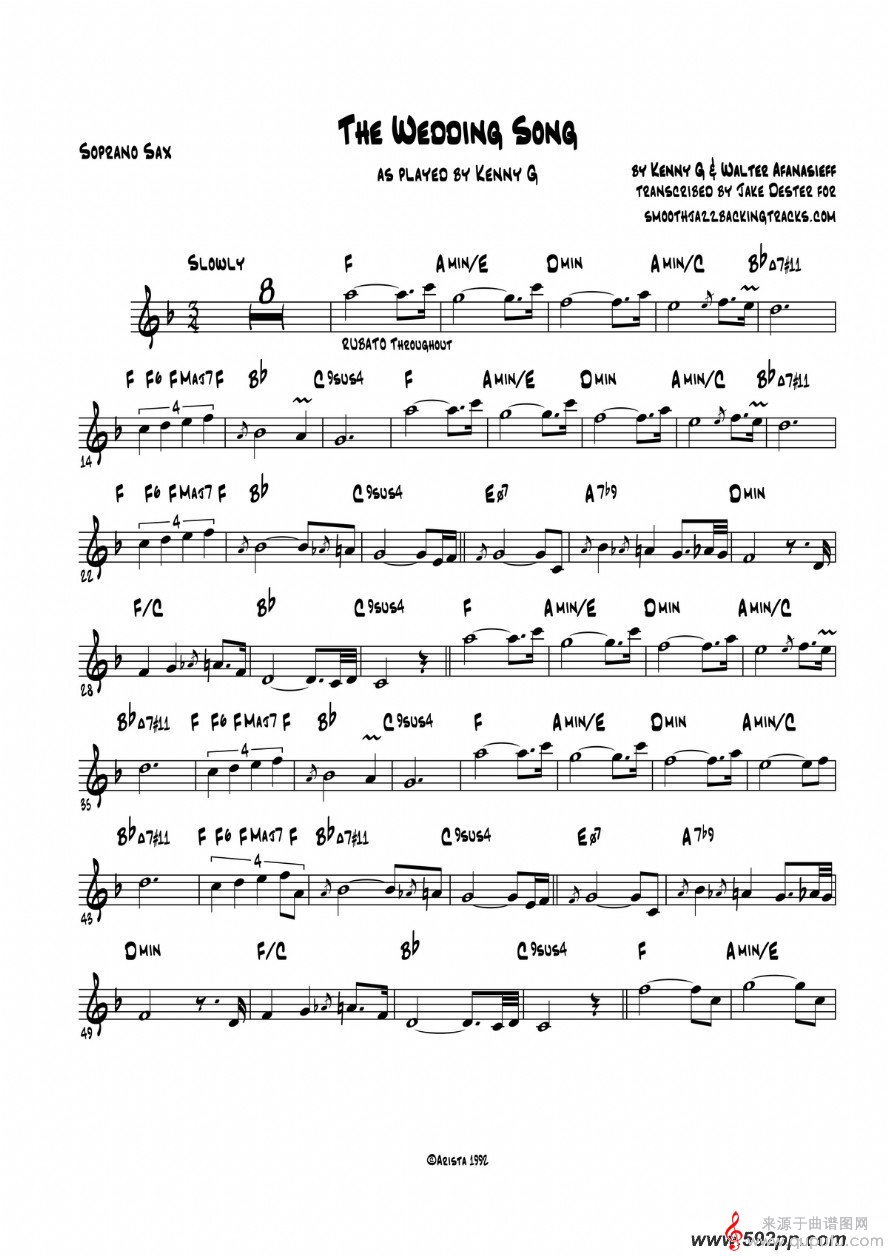 曲谱图网为您提供The Wedding Song萨克斯伴奏简谱找谱子,就上曲谱图网。