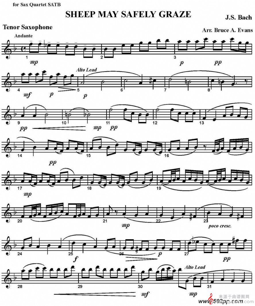 曲谱图网为您提供SHEEP MAY SAFELY GRAZE萨克斯简谱找谱子,就上曲谱图网。