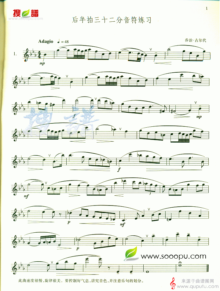 曲谱图网为您提供后半拍三十二分音符练习曲萨克斯五线谱找谱子,就上曲谱图网。