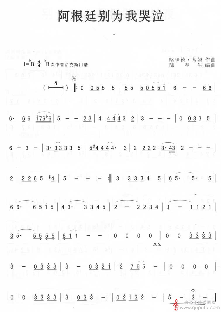 曲谱图网为您提供阿根廷别为我哭泣(阿根廷别为我哭泣萨克斯独奏简谱)找谱子,就上曲谱图网。
