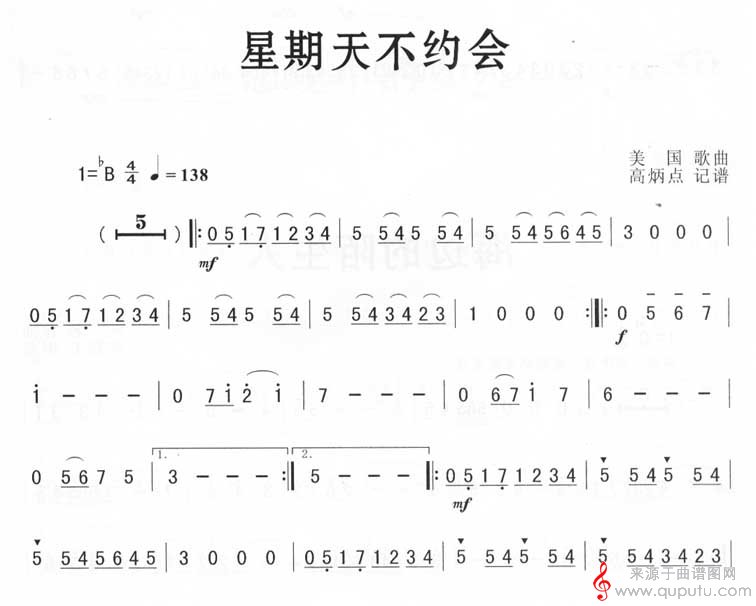 曲谱图网为您提供星期天不约会(美国歌曲星期天不约会萨克斯独奏伴奏教学简谱)找谱子,就上曲谱图网。