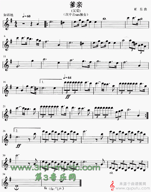 曲谱图网为您提供爹亲(爹亲次中音萨克斯曲五线谱)找谱子,就上曲谱图网。