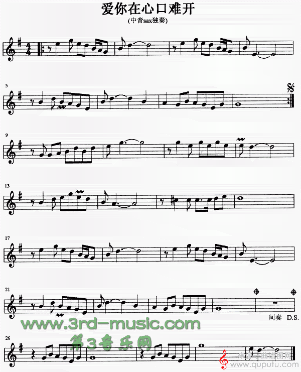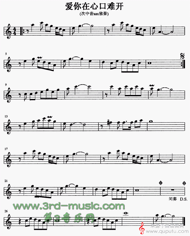 曲谱图网为您提供爱你在心口难开(次中音萨克斯曲独奏伴奏五线简谱)找谱子,就上曲谱图网。