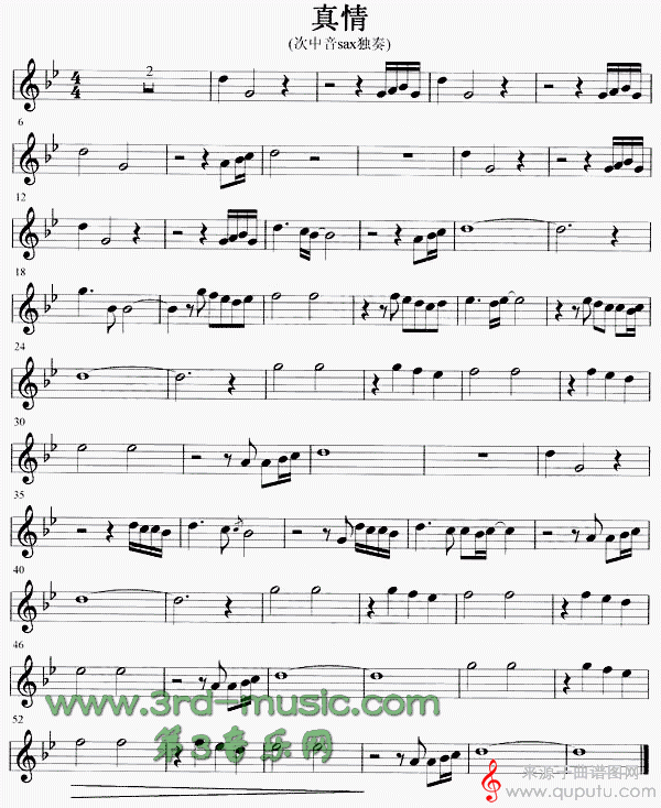 曲谱图网为您提供真情(真情次中音萨克斯曲独奏五线谱)找谱子,就上曲谱图网。