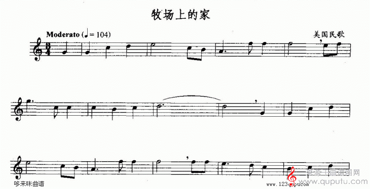 牧场上的家(美国民歌萨克斯演奏伴奏五线谱)