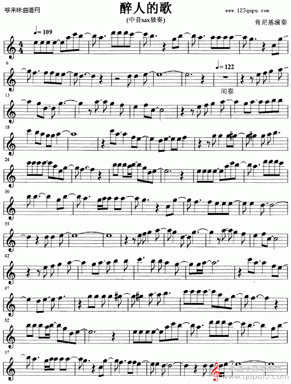 曲谱图网为您提供醉人的歌(醉人的歌中音萨克斯曲五线谱)找谱子,就上曲谱图网。